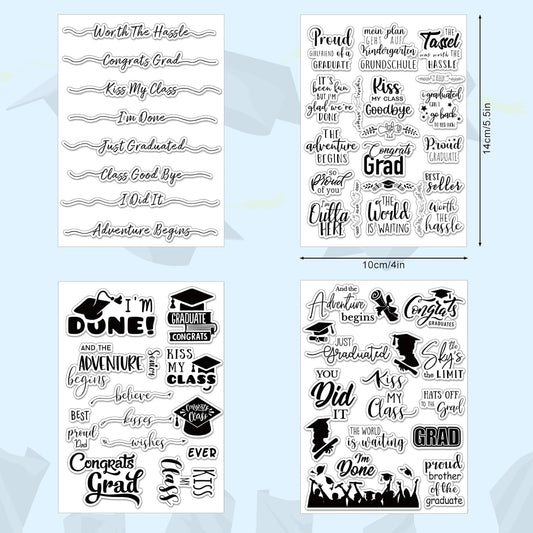 Whaline 4 Sheet Graduation Words Clear Stamps Congrats Grad Cap Silicone Transparent Stamps Border Stamp Cards for DIY Craft Card Making Scrapbooking Embossing Album Decor