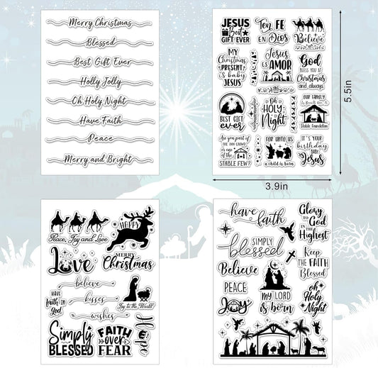 Whaline 4 Sheets Christmas Clear Stamps Greeting Words Nativity Scene Silicone Transparent Stamps Holy Night Stamp for Xmas DIY Craft Card Making Scrapbooking Embossing Album Decor