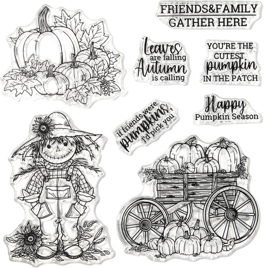 Halloween Clear Silicone stampReusable Stamp with Pumpkins, Skulls, Bats, Santa Claus, and Holiday Designs. Used for Making Cards, scrapbooks, and DIY templates (Scarecrow)