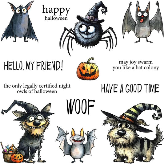 Halloween Clear Silicone stampReusable Stamp with Pumpkins, Skulls, Bats, Santa Claus, and Holiday Designs. Used for Making Cards, scrapbooks, and DIY templates (Halloween Puppy)