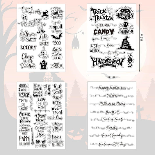 Whaline 4 Sheets Halloween Clear Stamps Greeting Words Pumpkin Bat Silicone Transparent Stamps Happy Halloween Stamp Cards for DIY Crafts Card Making Scrapbooking Embossing Album Decor