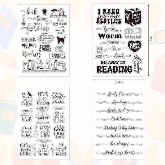 Whaline 4 Sheets Reading Words Clear Stamps Greeting Words Bookcase Bookshelf Silicone Transparent Stamps for DIY Craft Card Making Scrapbooking Embossing Album Decor