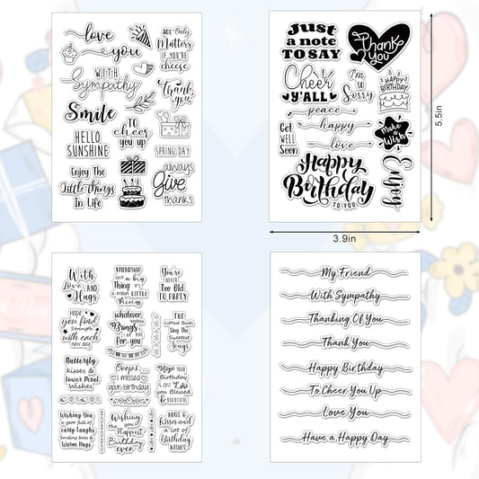 Whaline 4 Sheets Sentiment Words Clear Stamps Greeting Words Happy Birthday Silicone Transparent Stamps for DIY Craft Card Making Scrapbooking Embossing Album Decor