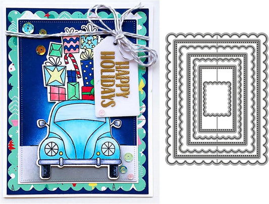 Cutting Dies Metal Stencils Scrapbooking Tools Flowers Lace Frame DIY Embossing Template for Paper Card Making Album Arts Crafts Supplies (Corrugated Rectangular Frame- 10.6x13.8cm)