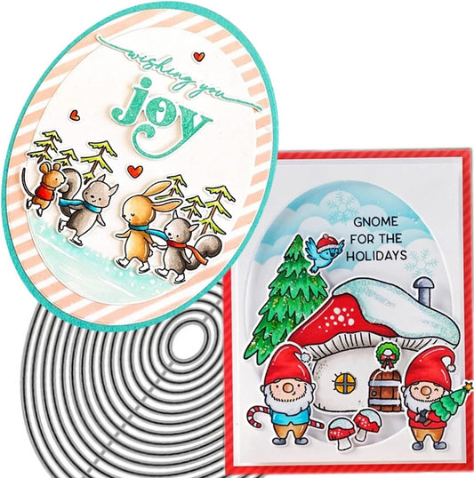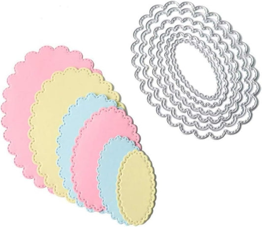 Cutting Dies Metal Stencils Scrapbooking Tools Flowers Lace Frame DIY Embossing Template for Paper Card Making Album Arts Crafts Supplies (Oval Set-14.5x11.2cm)