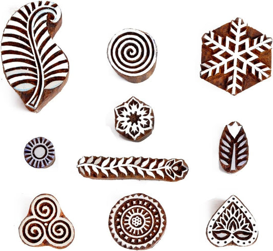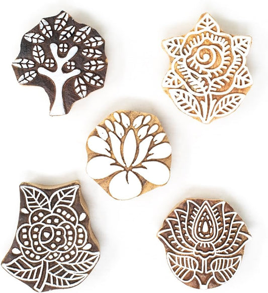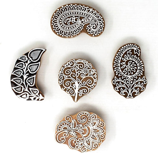 Handcarved Wooden Stamps for Block Printing - Stamps for Mehndi, Saree Border, Scrapbooking, Fabric Textile Paper, Kids, Art Work | Set of 5 | Hashcart®