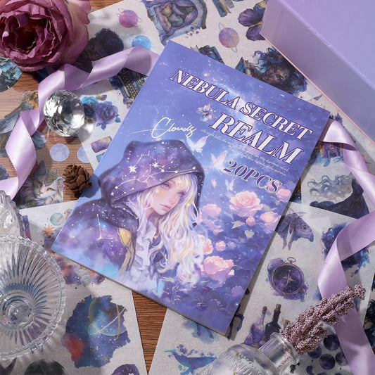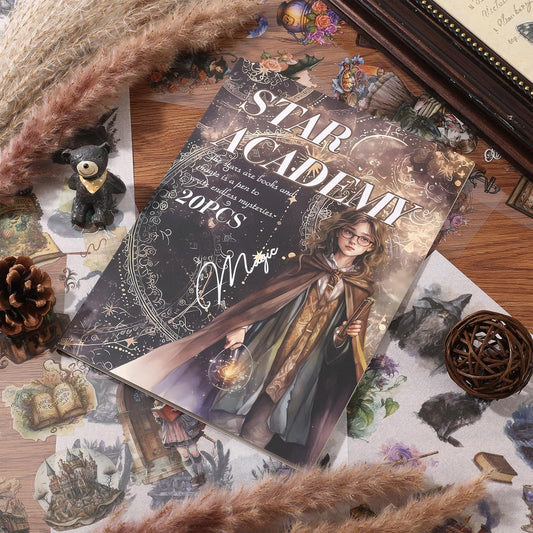 Fantasy Scrapbook Stickers 20 Sheets 240 Pre-Cut Magic Washi Stickers for Journaling PET Transparent Book Sticker Decorative or DIY Paper Crafts, Arts and Crafting Projects