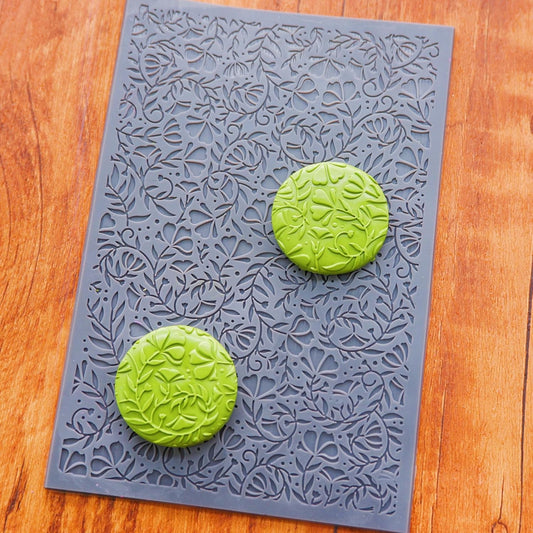 Arbuya Swirls Flowers Blossom Polymer Clay Texture Mat - Flourish Flowers Texture Sheet for Polymer Clay Jewelry Making, Earring Charms, DIY Craft Supplies