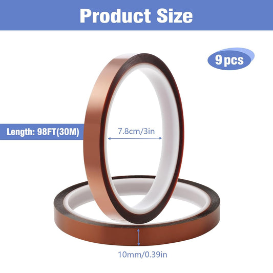 9 Rolls 10mm×30m (98Ft) Sublimation Tape Heat Transfer Tape High Temperature Heat Resistant Tape, Heat Tape for Sublimation Heat Press Electronic Soldering Masking, No Residue