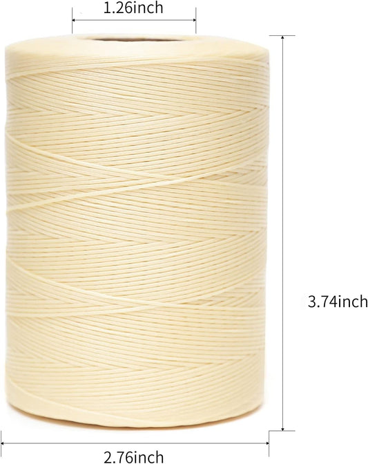 Waxed Thread,852Yards 150D 0.8mm Flat Polyester Wax Thread for Hand Sewing Leather Craft DIY Projects Shoes Repair Book Binding(Beige)