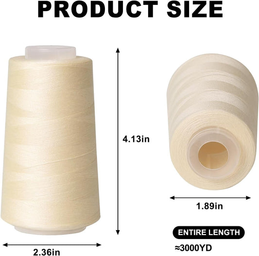 Sewing Thread Cone Set, 3 Pack Serger Thread, 3000 Yards Each, All Purpose Thread for Sewing, Quilting, Machines, Overlock, Merrow & Hand Embroidery (Beige*3)