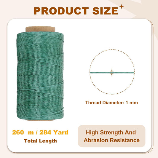 PATIKIL 284 Yard Flat Waxed Thread 150D 1mm Leather Sewing Cord for Repairing Shoes Bags Wallets Jewelry Making DIY Leather Craft, Green