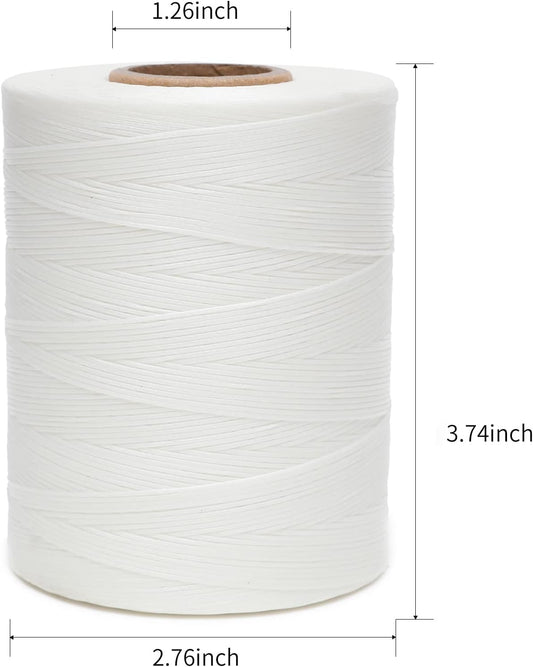 Waxed Thread,852Yds 150D 0.8mm Flat Polyester Wax Thread for Hand Sewing Leather Craft DIY Projects Shoes Repair Book Binding(White)