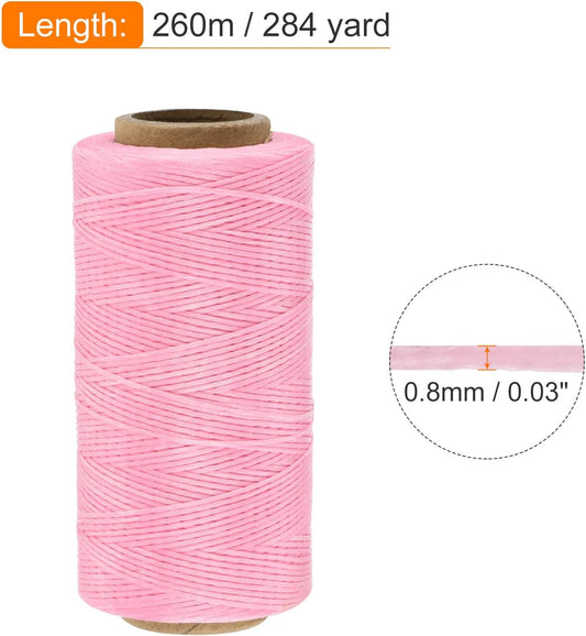 MECCANIXITY Waxed Thread,284 Yard 0.8mm 150D Flat Wax Thread Polyester Waxed String for Leather Sewing Hand Weaving Book Binding Home Decoration,Pink