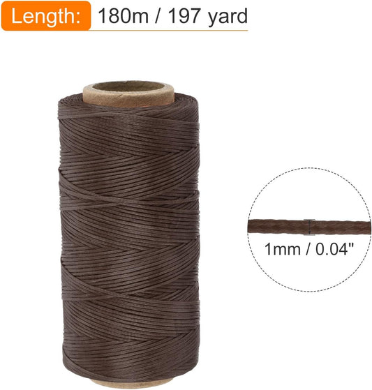 MECCANIXITY Waxed Thread,197 Yard 1mm 210D Flat Wax Thread Polyester Waxed String for Leather Sewing Hand Weaving Book Binding Home Decoration,Deep Brown
