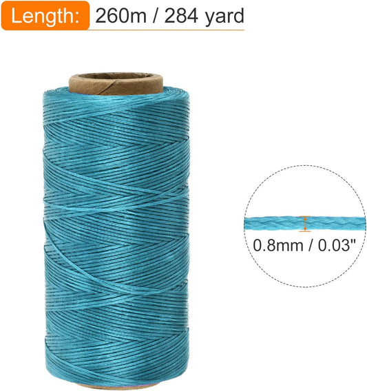 MECCANIXITY Waxed Thread,284 Yard 0.8mm 150D Flat Wax Thread Polyester Waxed String for Leather Sewing Hand Weaving Book Binding Home Decoration,Light Blue