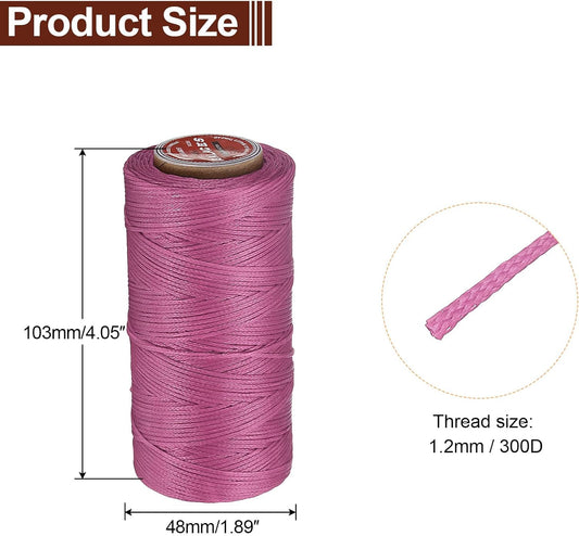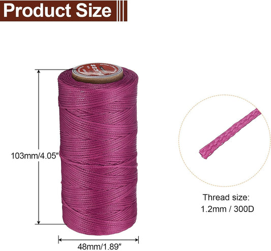 uxcell Flat Leather Sewing Waxed Thread, 140m / 153 Yards Polyester Wax String, 300D Wax Stitching Cord for Leather Crafts, Bookbinding, Bracelets Braided, Fuchsia