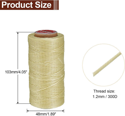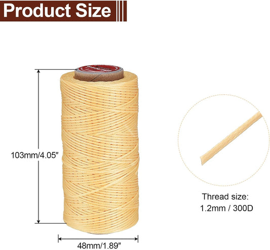 uxcell Flat Leather Sewing Waxed Thread, 140m / 153 Yards Polyester Wax String, 300D Wax Stitching Cord for Leather Crafts, Bookbinding, Bracelets Braided, Sand Yellow