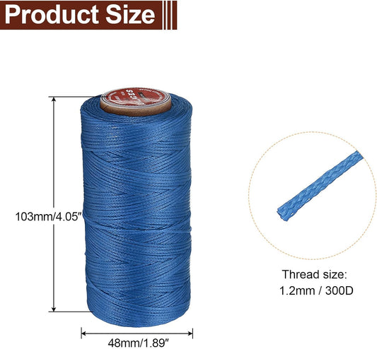 uxcell Flat Leather Sewing Waxed Thread, 140m / 153 Yards Polyester Wax String, 300D Wax Stitching Cord for Leather Crafts, Bookbinding, Bracelets Braided, Blue