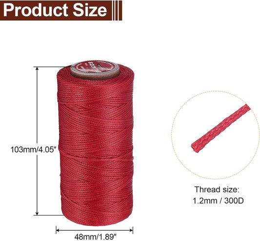 uxcell Flat Leather Sewing Waxed Thread, 140m / 153 Yards Polyester Wax String, 300D Wax Stitching Cord for Leather Crafts, Bookbinding, Bracelets Braided, Red