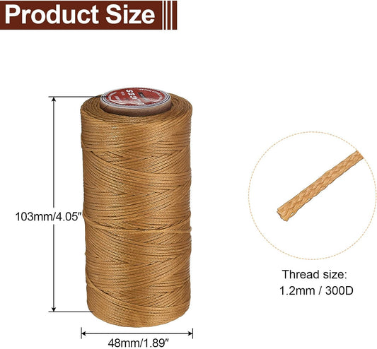 uxcell Flat Leather Sewing Waxed Thread, 140m / 153 Yards Polyester Wax String, 300D Wax Stitching Cord for Leather Crafts, Bookbinding, Bracelets Braided, Khaki Brown