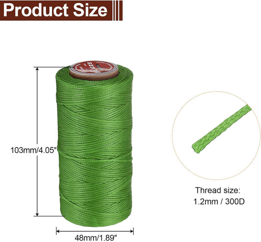 uxcell Flat Leather Sewing Waxed Thread, 140m / 153 Yards Polyester Wax String, 300D Wax Stitching Cord for Leather Crafts, Bookbinding, Bracelets Braided, Grass Green