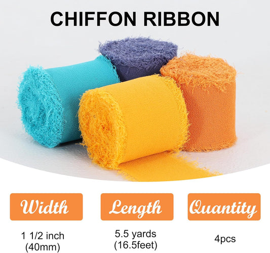 TONIFUL 4 Rolls Blue & Orange Chiffon Ribbon 1 1/2 inch× 5.5 Yards Ribbon Fabric Silk Ribbon for Gift Wrapping Wedding Party Decoration Flower Bouquet Wrapping Bows Making DIY Crafts