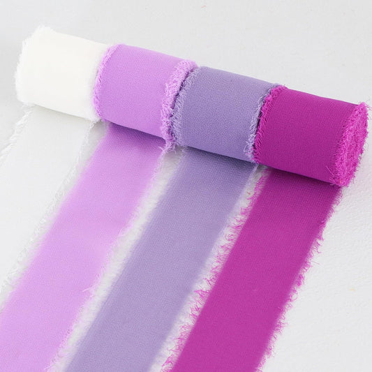 Ribbli Chiffon Silk Ribbon, 1.5 inch x 30 Yard, Blush Pink/Dusty Pink/Mauve Fringe, Wedding Invitations, Bridal Bouquets, Flower Arrangement