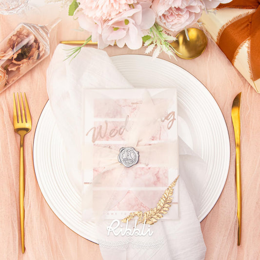 Ribbli Chiffon Silk Ribbon, 1.5 inch x 30 Yard, Champagne/Blush Pink/Dusty Rose Fringe Chiffon Ribbon for Wedding Invitations, Bridal Bouquets Wrapping, Flower Arrangement Decoration