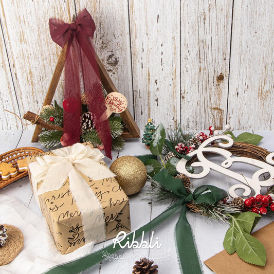 Ribbli Red Cream Green Christmas Ribbon 1.5 Inch x 3 Rolls Total 30 Yards Handmade Fringe Chiffon Silk Ribbon for Gift Wrapping DIY Crafts Home Decor