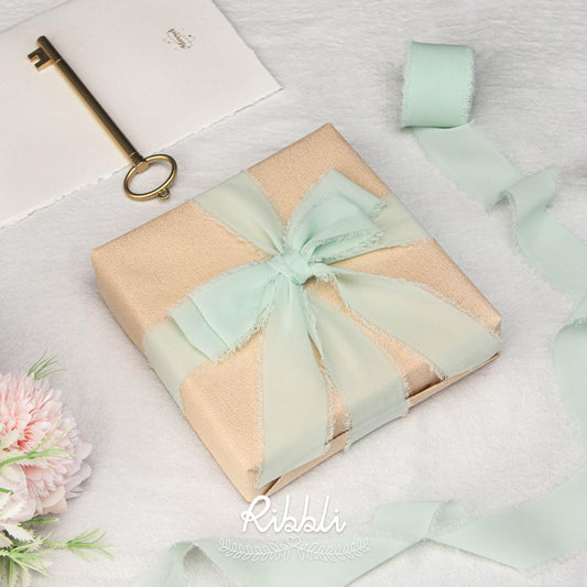 Ribbli Mint Green Chiffon Ribbon 1-1/2 inch x 20 Yard Handmade Fringe Chiffon Silk Ribbon, Mint for Wedding Invitations, Bridal Bouquets Wrapping, Flower Arrangement Decoration