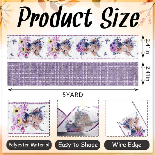 2.5'' x 10 Yards Spring Wired Ribbons for Crafts Wreath Bows Wrapping Natural Buffalo Plaid Ribbon Rustic Purple Ribbon for Birthday Party Home Decoration