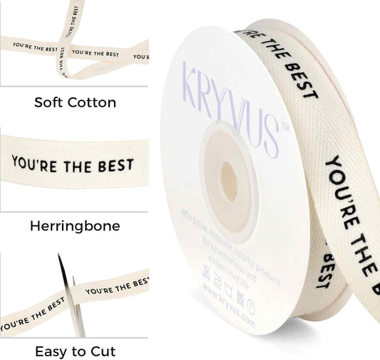 You're The Best Ribbon - 5/8 Inch x 12 Yards Natural Twill Tape Ribbon, Cotton Herringbone Ribbons for Gift Wrapping, Birthdays, Christmas, Anniversaries, Valentine's Day, Mother's Day