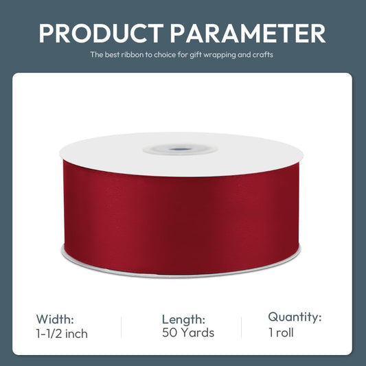 KMER LIFE 1-1/2" Wide x 50 Yards Wine Red Single Faced Polyester Satin Ribbon, Wine Red Satin Ribbon Perfect for Wedding Decor, Wreath, Crafts, Gift Wrapping & Other Projects (Wine Red)