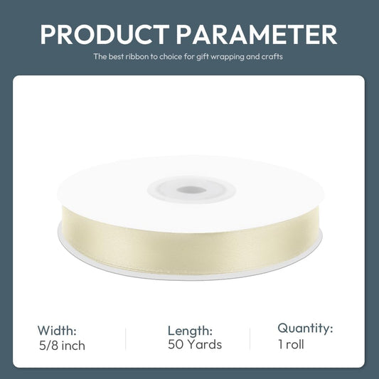 KMER LIFE 5/8" Wide x 50 Yards Ivory Single Faced Polyester Satin Ribbon - Perfect for Wedding Decor, Wreaths, Crafts, Gift Wrapping & Other Projects