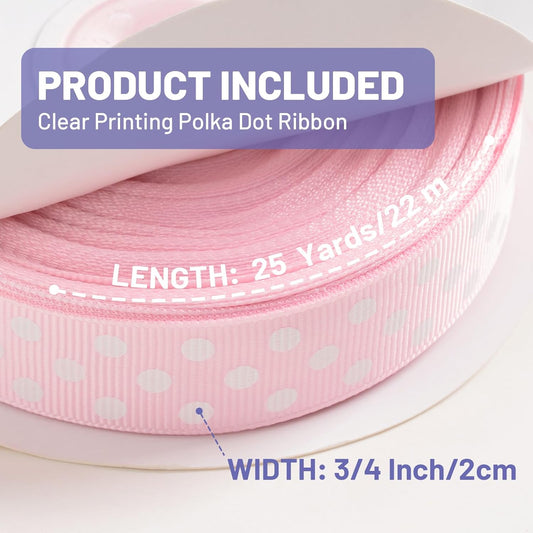 Polka Dot Grosgrain Ribbon 3/4 Inch, 25 Yards Spool Pink and White Dot Craft Ribbon for Christmas Gift Wrapping DIY Crafts Hair Bows Wedding Party Decor Sewing and Home Decoration