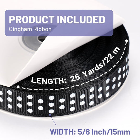 Polka Dot Grosgrain Ribbon 5/8 Inch, 25 Yards Spool Black and White Dot Craft Ribbon for Christmas Gift Wrapping DIY Crafts Hair Bows Wedding Party Decor Sewing and Home Decoration
