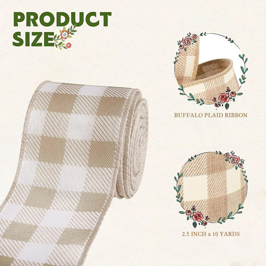 Burlap Ribbon Wired, Farmhouse Buffalo Plaid Ribbon Rustic Fabrics for Gifts Wrapping DIY Crafts Floral Bows Wreath Making Party Supplies Holiday Home Decoration, 2.5 Inch x 10 Yards