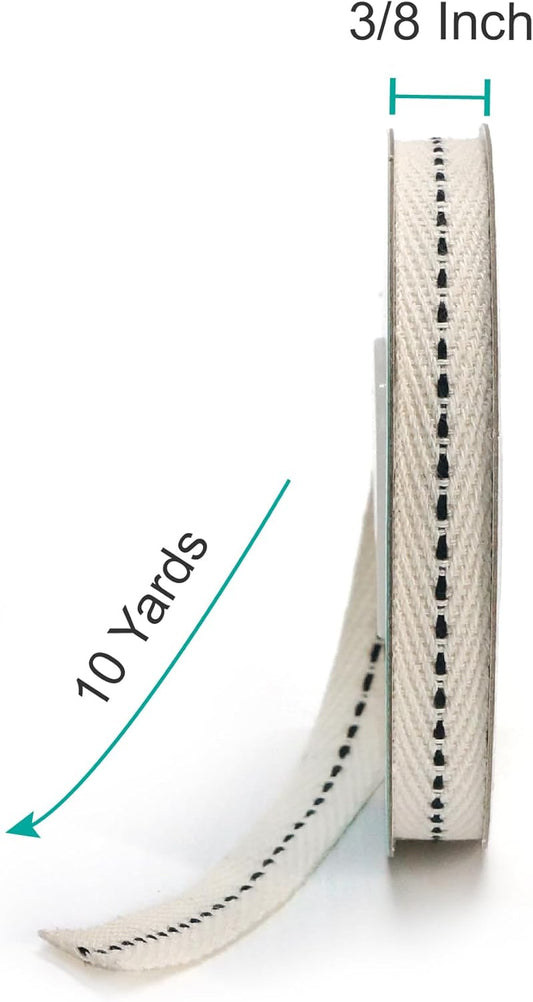 CT CRAFT LLC Ivory Cotton Black Stitched Ribbon 3/8" x 10 Yards for Home Décor Gift Present Wrapping DIY Crafts Birthday Wedding Bouquet Christmas