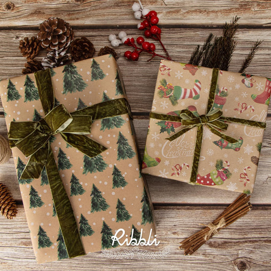 Ribbli Moss Green Velvet Ribbon 1 Inches Luxury Crinkled Green Christmas Ribbon for Gift Wrapping Crafts Home Decor-Continuous 10 Yard