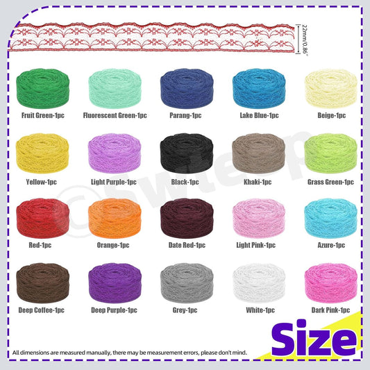 Swpeet 20 Rolls in Total 200 Yards 2.2cm×10 Yards Colorful Lace Ribbon Unilateral Floral Pattern Fabric Lace Ribbon, Lace Trim Ribbon Crafting Lace for Wedding Decorating, Sewing Gift Wrapping