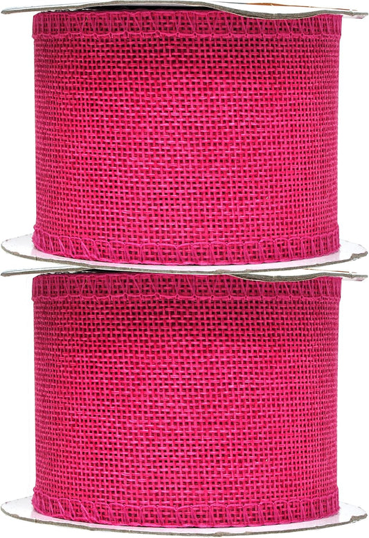 Mandala Crafts Pink Burlap Wired Ribbon 2.5 Inches Wide Jute Ribbons for Crafts - 10 Yds Roll Rustic Burlap Wrap Trim Ribbons for Wreaths Bows Party Decoration