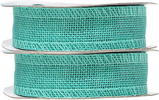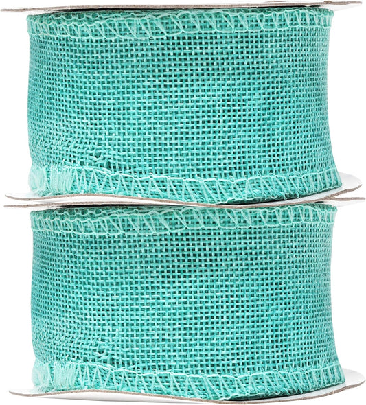 Mandala Crafts Turquoise Burlap Wired Ribbon 2 Inches Wide Jute Ribbons for Crafts - 10 Yds Roll Rustic Burlap Wrap Trim Ribbons for Wreaths Bows Party Decoration