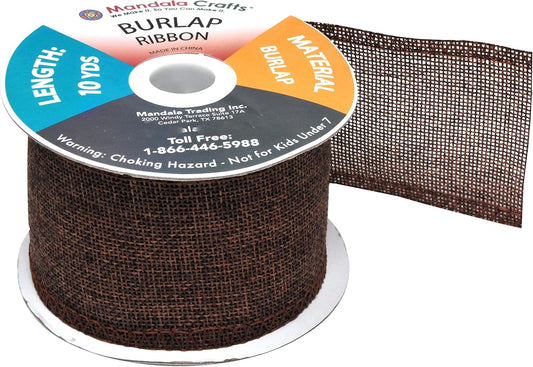Mandala Crafts Brown Burlap Ribbon 2.5 Inches Wide Jute Ribbons for Crafts - 20 Yds Roll Rustic Burlap Wrap Trim Ribbons for Wreaths Bows Wedding Party Decoration