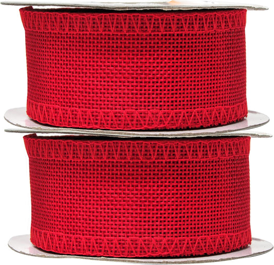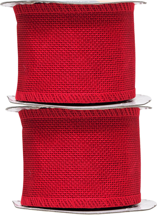 Mandala Crafts Red Burlap Ribbon 2.5 Inches Wide Jute Ribbons for Crafts - 20 Yds Roll Rustic Burlap Wrap Trim Ribbons for Wreaths Bows Wedding Party Decoration