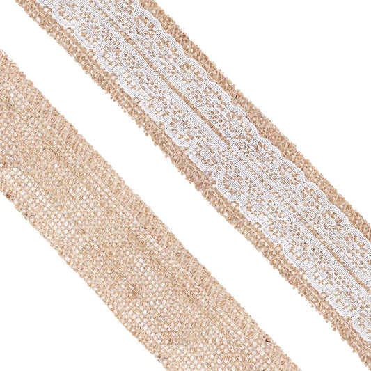 Mandala Crafts Burlap and Lace Ribbon 2 Inches Wide Jute Ribbons for Crafts - 20 Yds Roll Rustic Burlap Wrap Trim Ribbons for Wreaths Bows Wedding Party