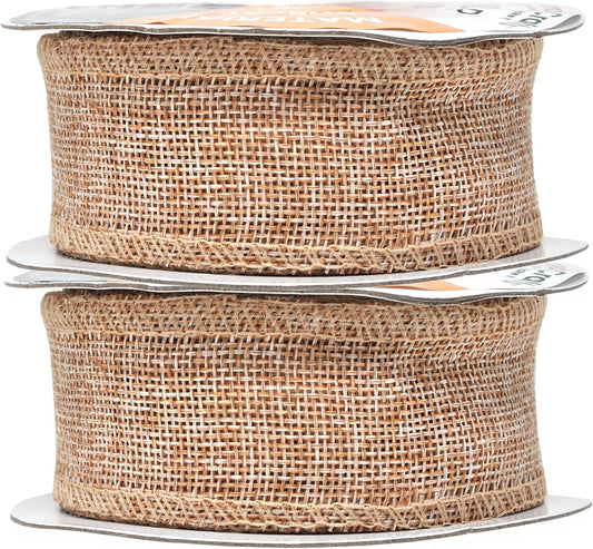 Mandala Crafts Natural Burlap Wired Ribbon 2 Inches Wide Jute Ribbons for Crafts - 10 Yds Roll Rustic Burlap Wrap Trim Ribbons for Wreaths Bows Party Decoration