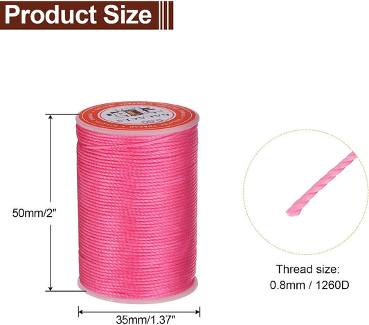 uxcell Round Leather Sewing Waxed Thread, 55m / 60 Yards Wax Polyester String, 0.8mm Waxed Stitching Cord for Leather Crafts, Bookbinding, Bracelets Braided, Pink