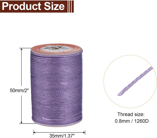 uxcell Round Leather Sewing Waxed Thread, 55m / 60 Yards Wax Polyester String, 0.8mm Waxed Stitching Cord for Leather Crafts, Bookbinding, Bracelets Braided, Purple
