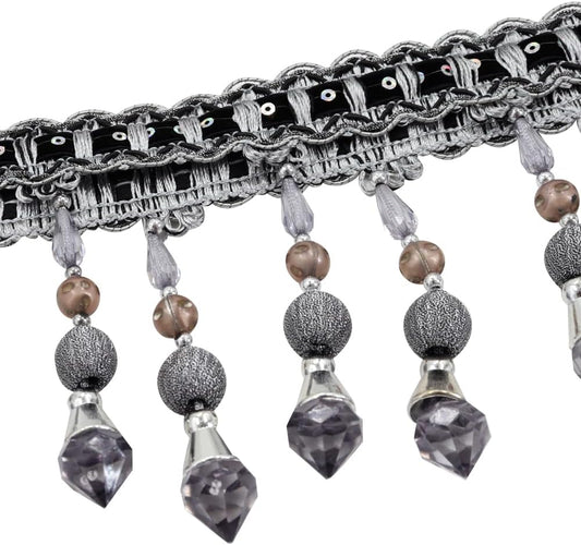 3yards Beading Fringe Trimming Long Beads Tassel Curtain Trim Ribbon Trim for Cover Edge Decorative (Gray)